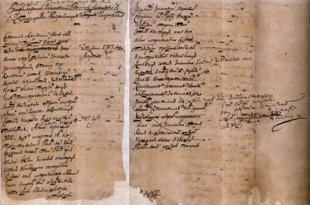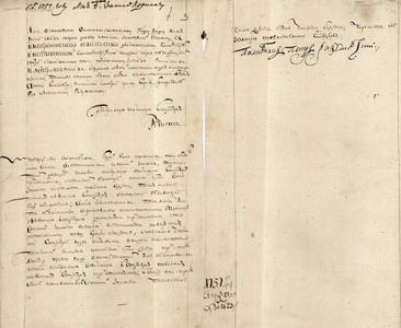1757 р., квітня 23. – Рапорт полковника Петра Розумовського про виділення коштів для виготовлення нових сотенних прапорів у Ніжинському полку: “сотенные знамена в крайной обветшалости находятся и требовано от полковой канцелярии куда надлежит о выдаче на исправление указанных знамен потребной суммы денег…”.