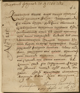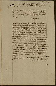 1787 р., липня 28. – Прохання архіваріуса ієродиякона Платона про звільнення його з посади через хворобу та розпорядження митрополита Самуїла (Миславського)