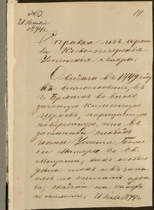 1900 р., лютого 29. – Запитальник від імператорського московського археологічного товариства для описання архівів, надісланий в архів Києво-Печерської лаври.