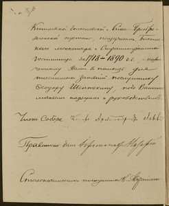 1895 р., червня 17. – Повідомлення Духовного Собора архіваріусу Києво-Печерської лаври ієромонаху Сергію про видання дозволу на проведення дослідження та ознайомлення з окремими справами архіва інспектора Одеського інституту статського радника Михайла Істоміна “с научной целью”.