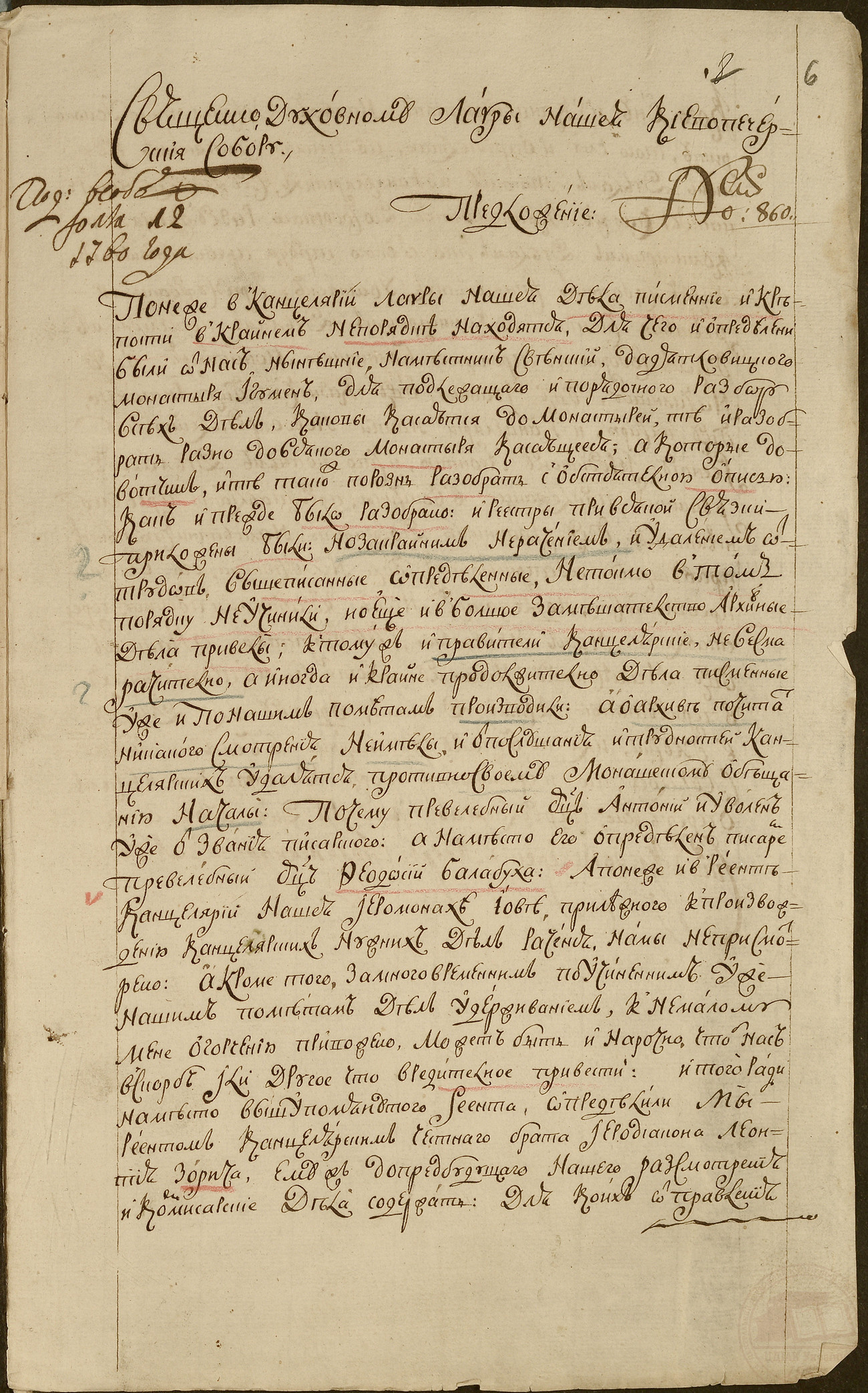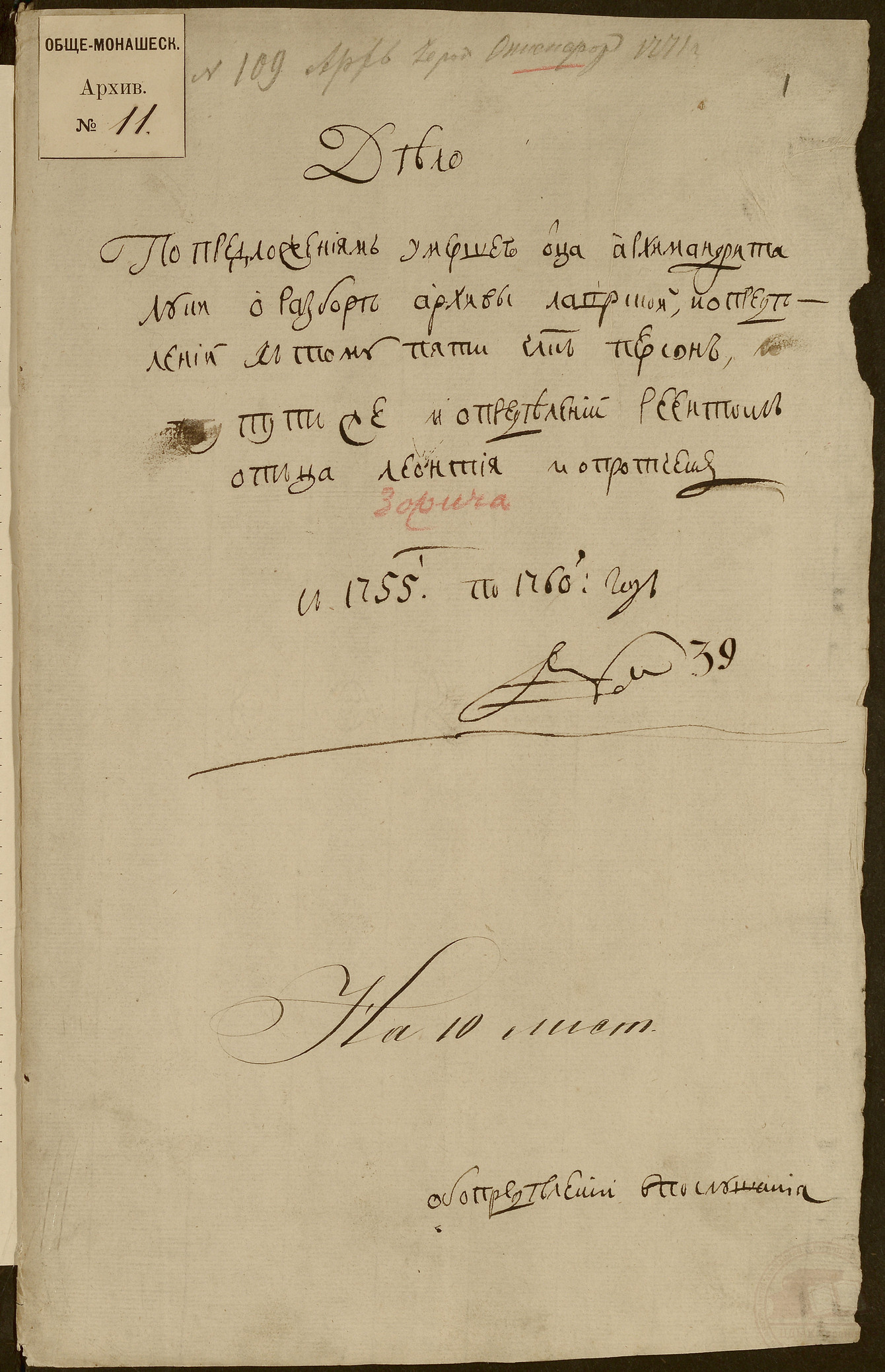 1760 р., липня 12. – Пропозиція архімандрита Луки (Білоусовича) щодо упорядкування лаврського архіву та розгляд причин, які призвели до цього.